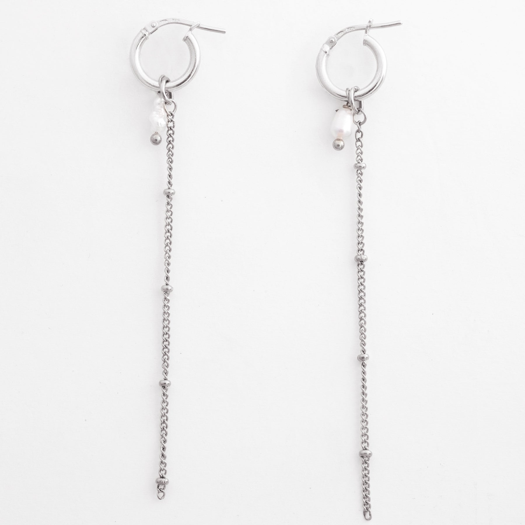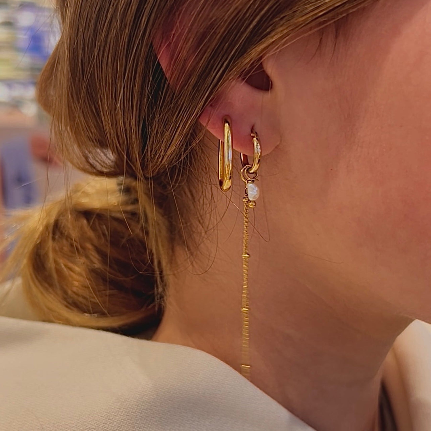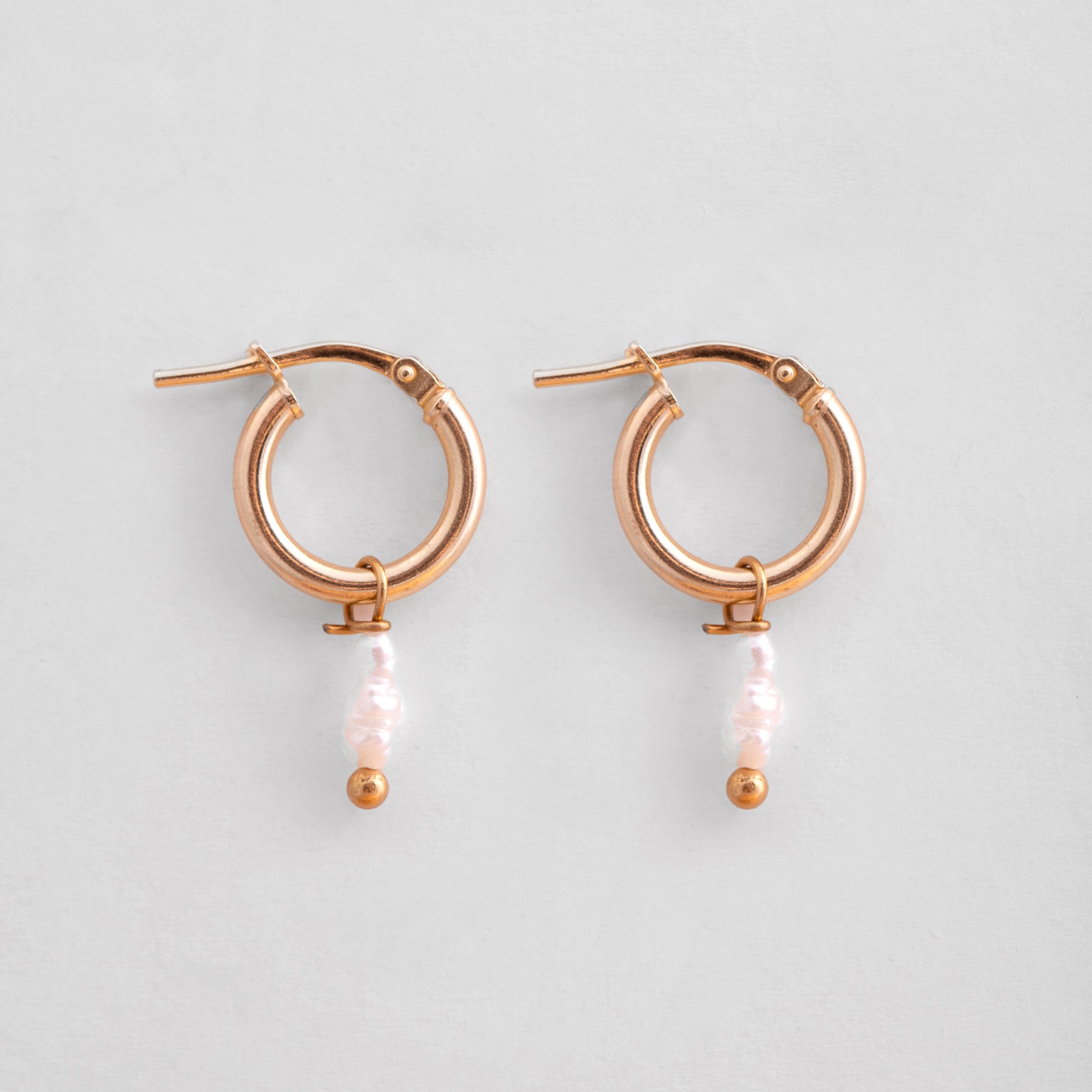 Delicate handmade small hoops featuring real freshwater pearls and a versatile 3-in-1 design — wear them as simple hoops, drops, or layered.