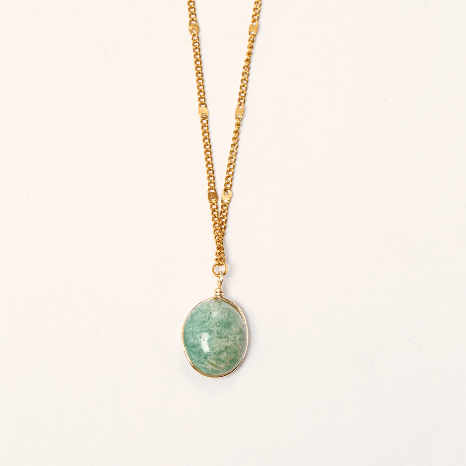 Capture the essence of coastal elegance with the Seafoam Amazonite Necklace. Featuring a smooth, light green turquoise Amazonite stone, this minimalist design embodies a relaxed, surfer-inspired vibe. Crafted with waterproof stainless steel, 925 silver, or 14k gold plated options, it’s the perfect piece for any occasion, whether you’re by the beach, heading out for a casual day, or looking for effortless chic style.