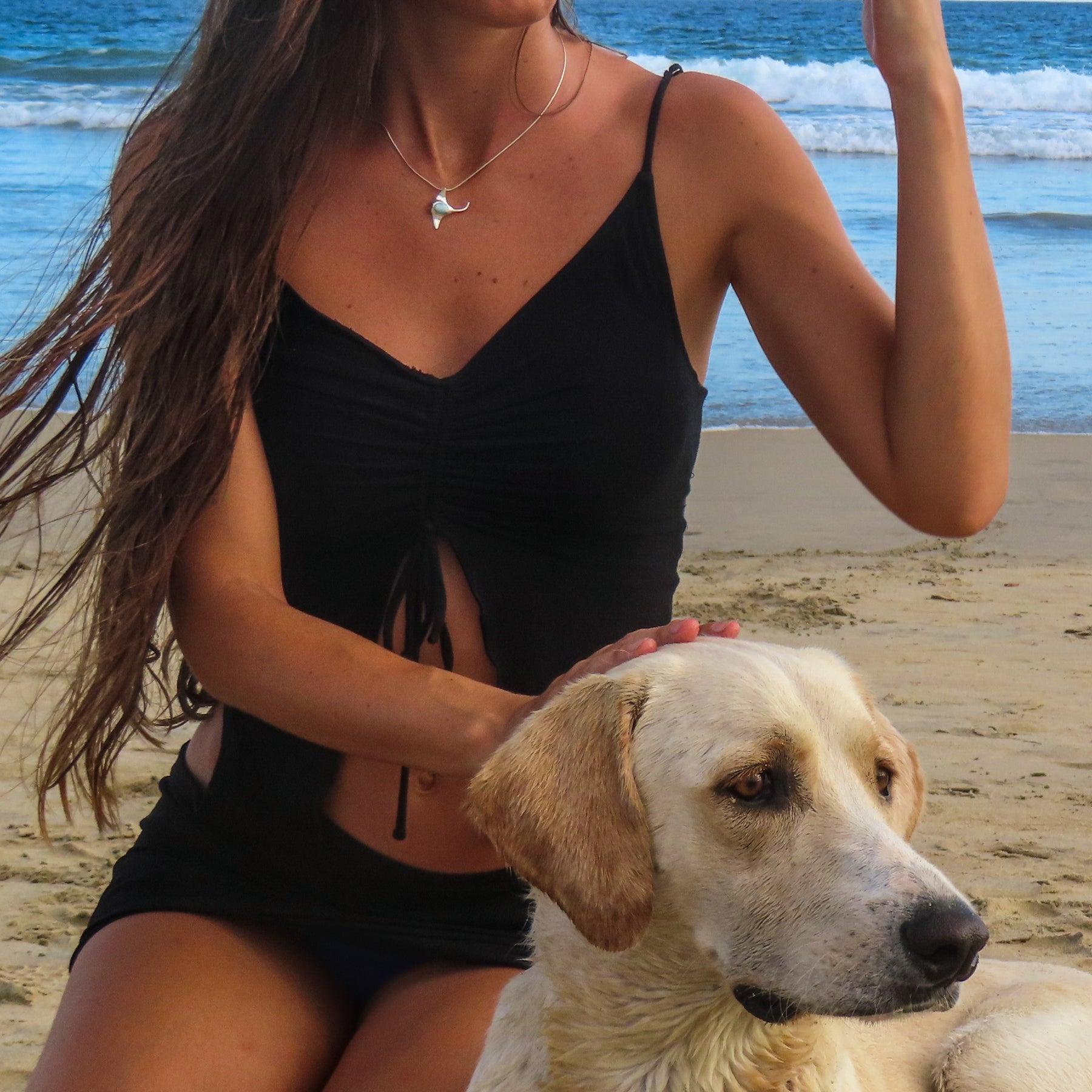 The Larimar, with its soft blue hues, mirrors the calm and mystery of the ocean, while the stingray design symbolizes freedom and effortless glide through water. Worn as a statement piece or as a meaningful reminder of your connection to nature, this necklace is perfect for ocean lovers and those drawn to the power of the sea.