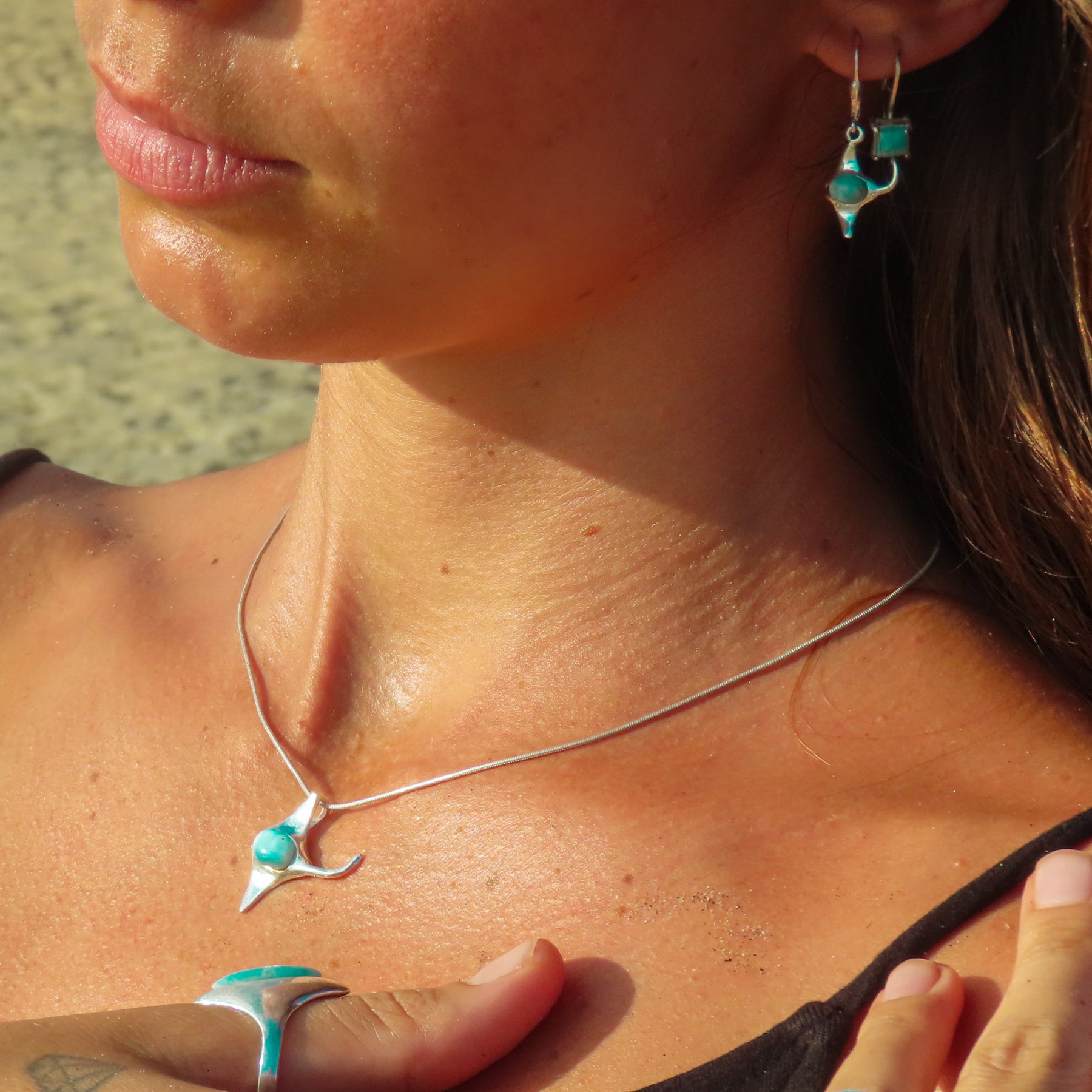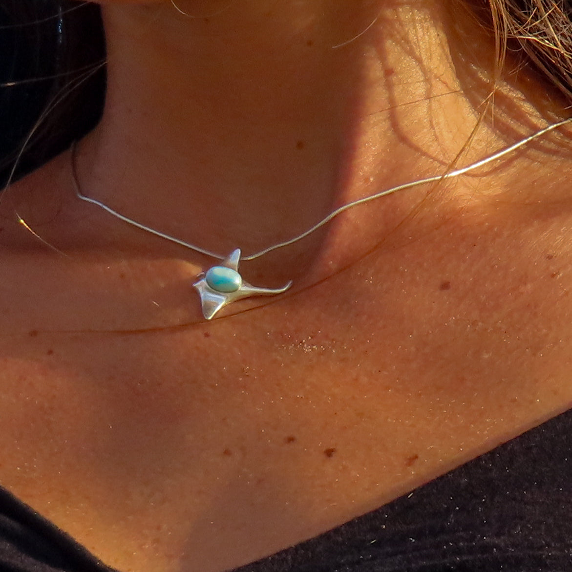 Ocean Glide – Larimar Stingray Necklace
