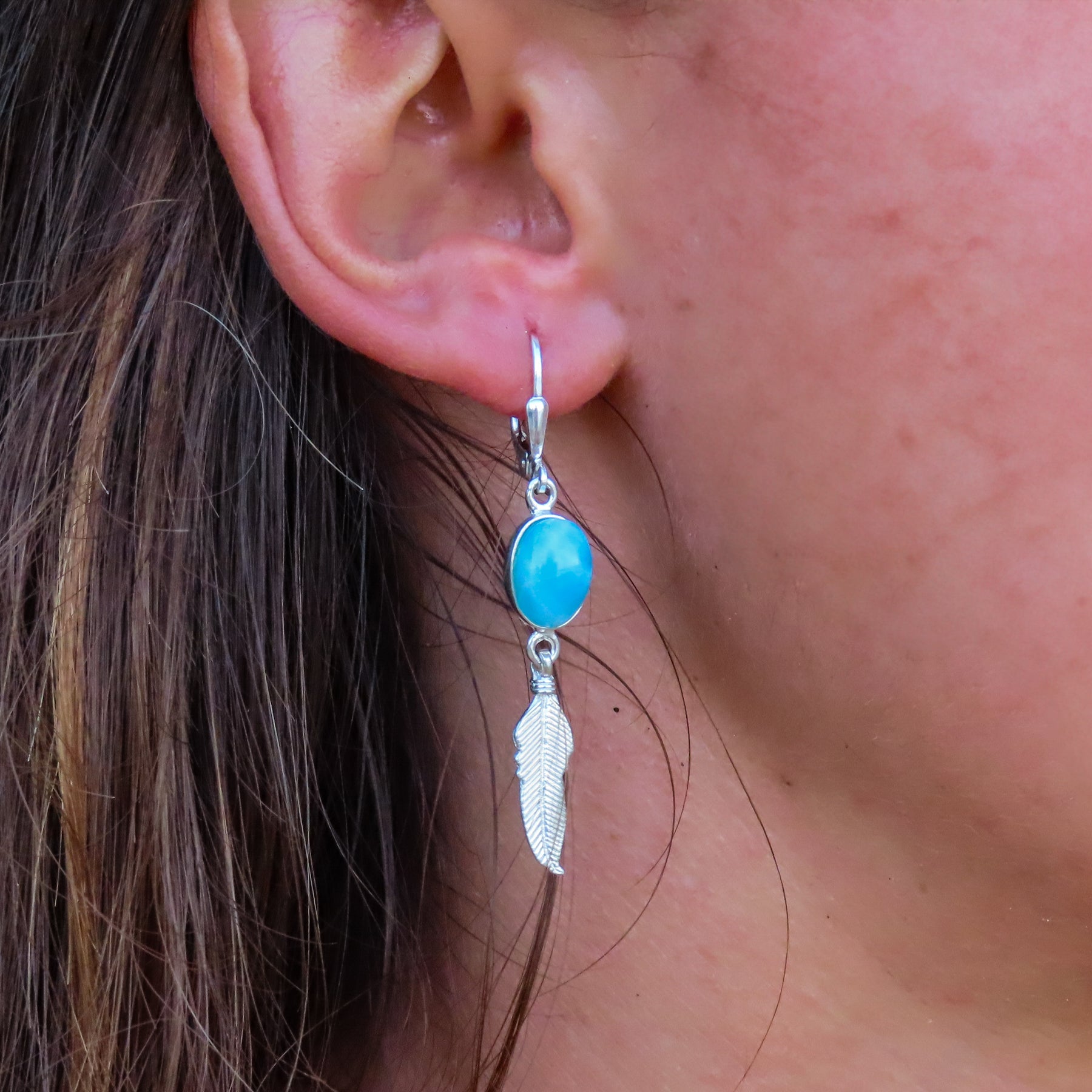 חבקו את קצב הטבע עם עגילי Boho Breeze – Larimar Falling Leaf. עגילים קלים אלה, עשויים בעבודת יד מכסף סטרלינג 925, כוללים פרטים עדינים של עלים נושרים בשילוב עם אבני Larimar אמיתיות - כל אחד מהם פרוסה שלווה של שמיים קריביים.