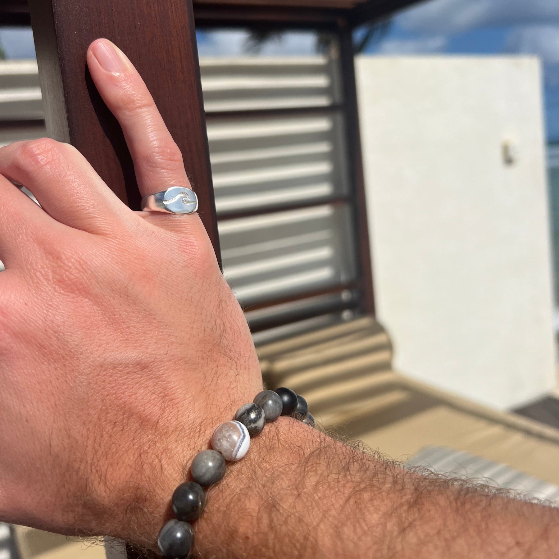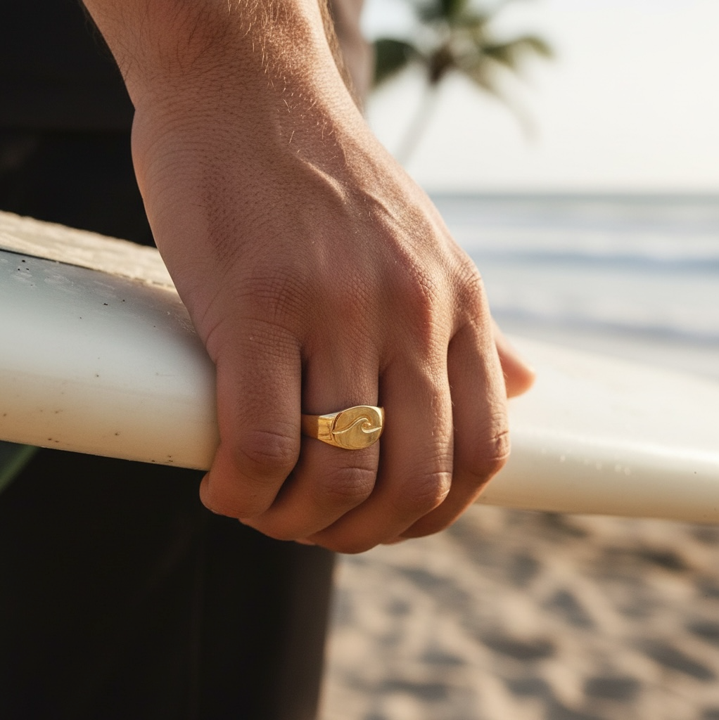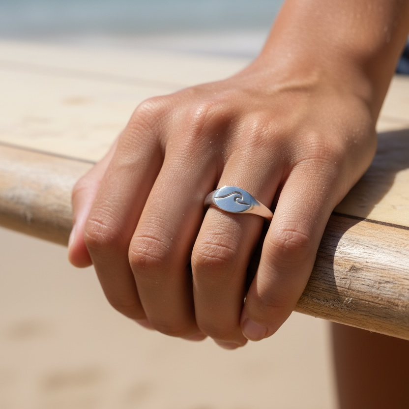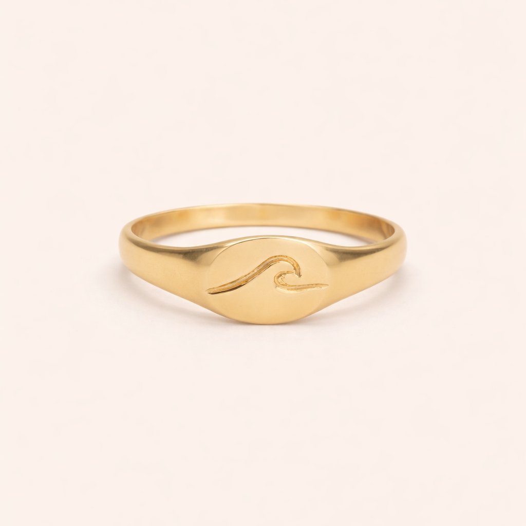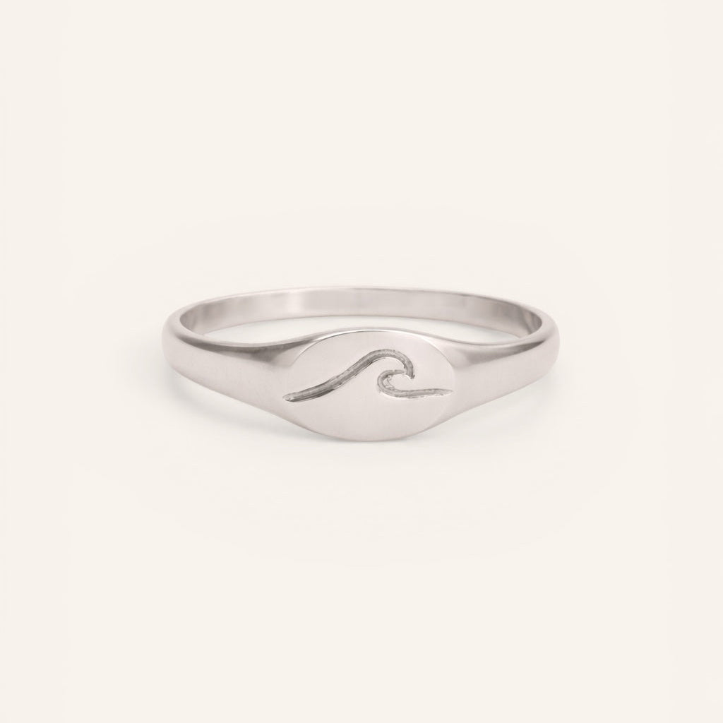 טבעת חותם עם חריתה של גל. כולה להתאים לזרת או לכל אצבע אחרת.